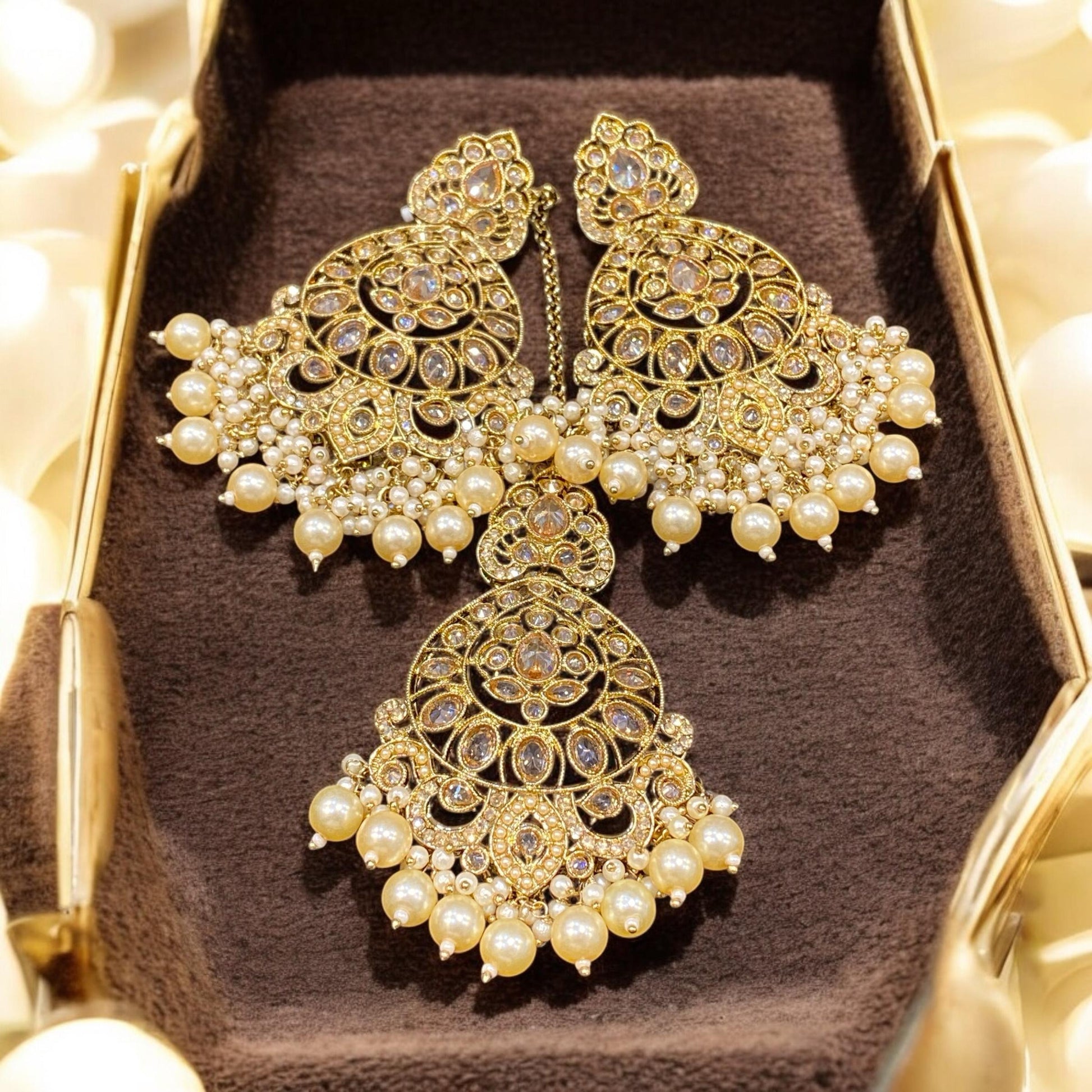 Pakistani/Indian big Mang tikka and Earrings/oversized tikka/jewellery/punjabi tika/jadau tikka/chandlerearrings /StatementEarrings/Earrings