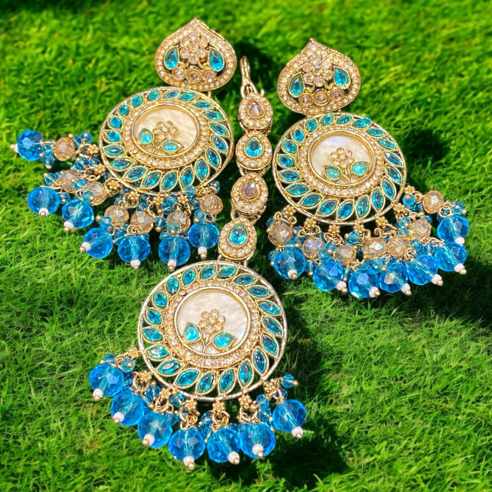 Pakistani/Indian big Mang tikka and Earrings/oversized tikka/jewellery/punjabi tika/jadau tikka/chandlerearrings /StatementEarrings/Earrings